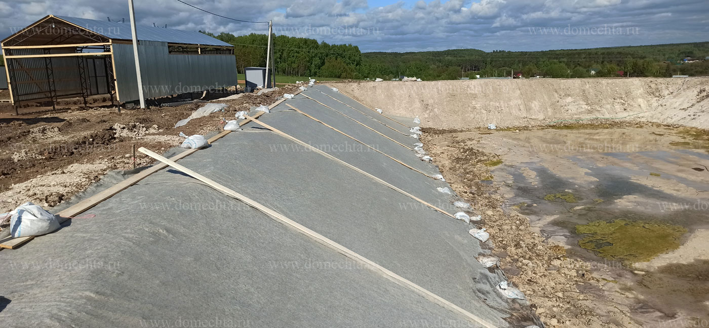 Так как у заказчика в пруду было много рыбы различных пород, то мы совместно определили уровень необходимого укрепления, которое не позволит дальнейшее разрушение береговой линии.