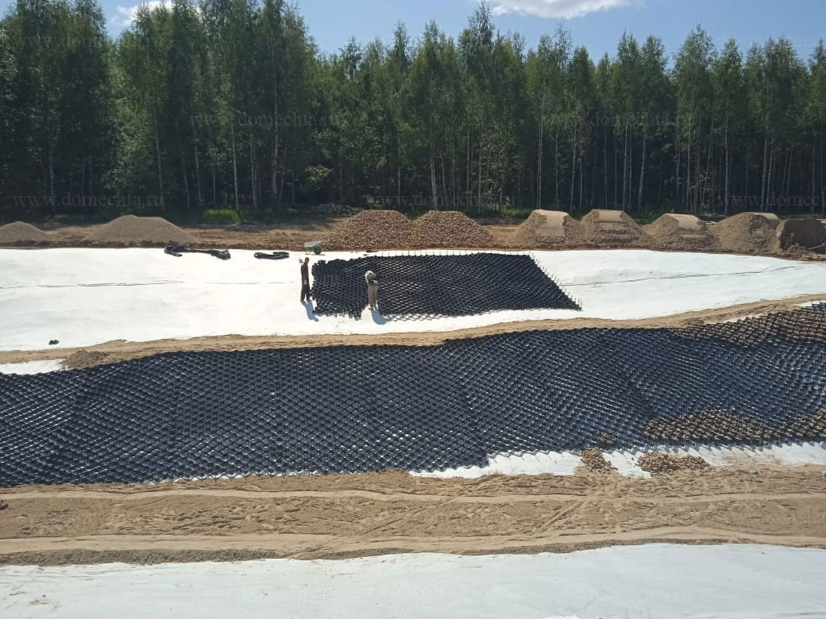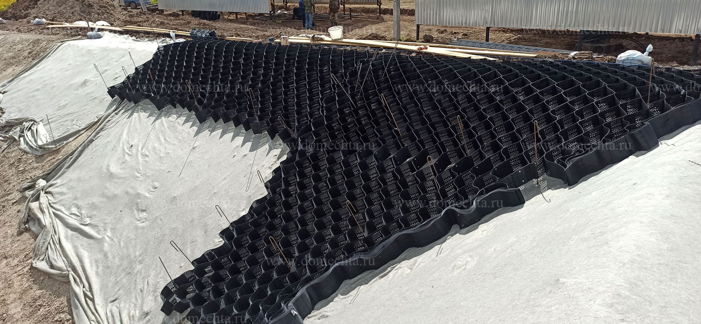 Приступаем к монтажу георешётки на подготовленный и защищённый склон.