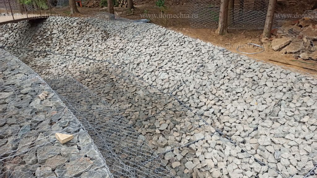 Для получения более интересного профиля берега (склона) возможно применение щебня различного цветового исполнения.